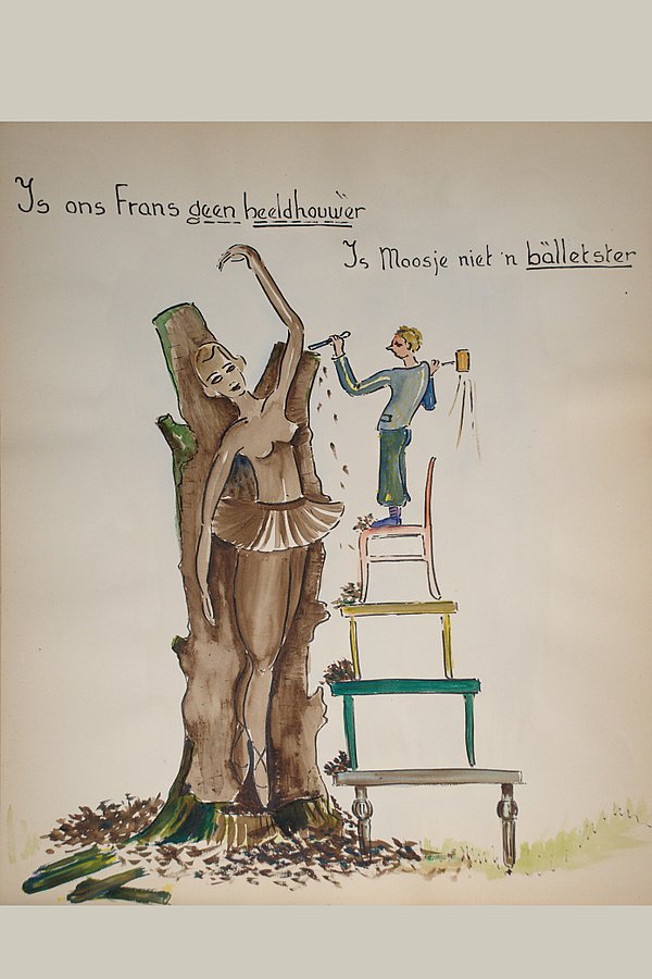 16. Frans en Moos: “Is ons Frans geen beeldhouwèr / Is Moosje niet ’n bàlletster”